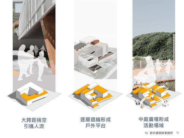 漸退的量體創造生態跳島,也呼應半屏山的地景特色;